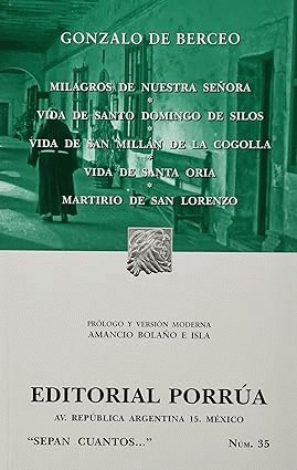 Milagros de Nuestra Señora. Vida de Santo Domingo de Silos. Vida de San Millán de la Cogolla. Vida de Santa Oria. Martirio de San Lorenzo [texto impreso] / Gonzalo de Berceo ; prólogo y versión Amancio Bolaño e Isla