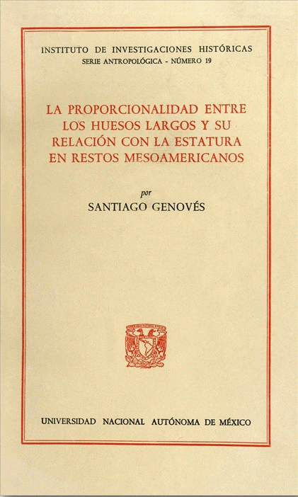 La proporcionalidad entre los huesos largos y su relación con la estatura en restos mesoamericanos [texto impreso] / Santiago Genovés