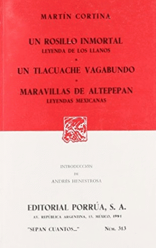Un rosillo inmortal [texto impreso] : leyenda de los llanos. Un tlacuache vagabundo. Maravillas de Altepepan: Leyendas mexicanas / Martín Cortina ; introducción Andrés Henestrosa